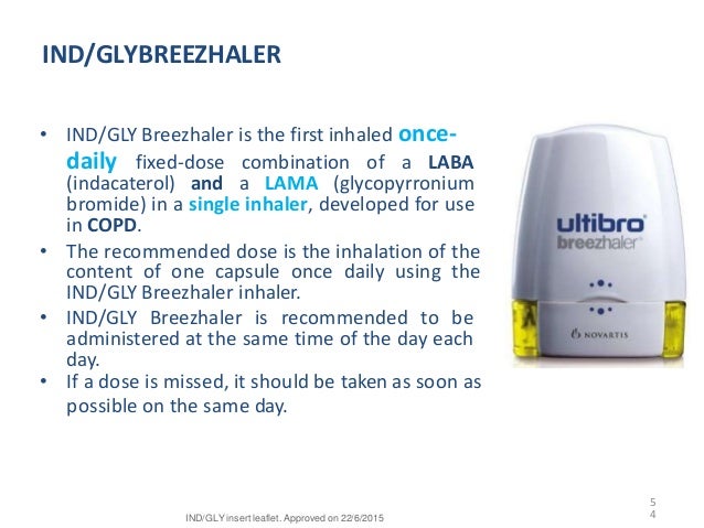 Breezhaler price, shop our huge variety of nebulizers free ... from radioleg.com Indacaterol 110 micrograms / glycopyrronium 50 micrograms (ultibro breezhaler 110/50) for chronic obstructive pulmonary disease. It works by opening up the air passages in your lungs so that air can flow into your lungs more freely. Feb 11, 2014 · summary of the evidence on the indacaterol/glycopyrronium (ultibro breezhaler) for relieving the symptoms of chronic obstructive pulmonary disease (copd).